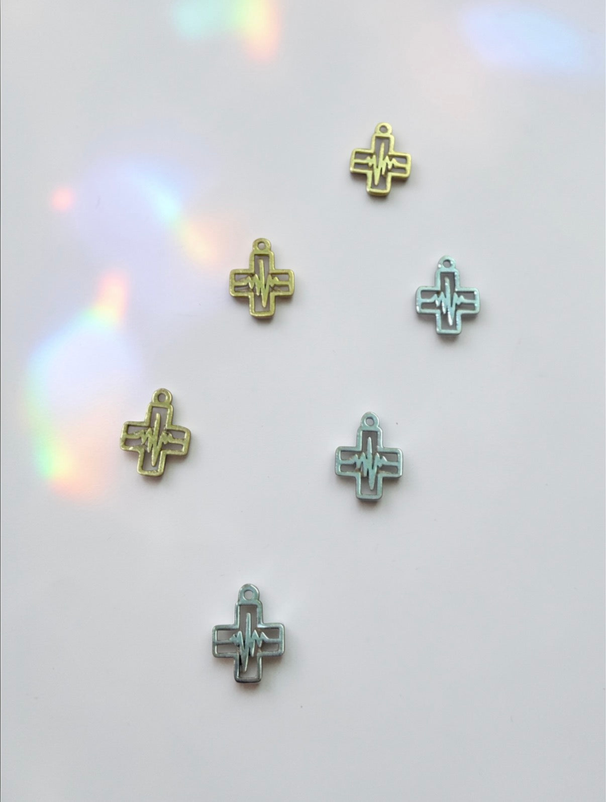 Each cap comes with your choice of 2 charms plus your choice of a silver or gold medical cross charm with an EKG strip pattern in the center (the second photo on the listing!).